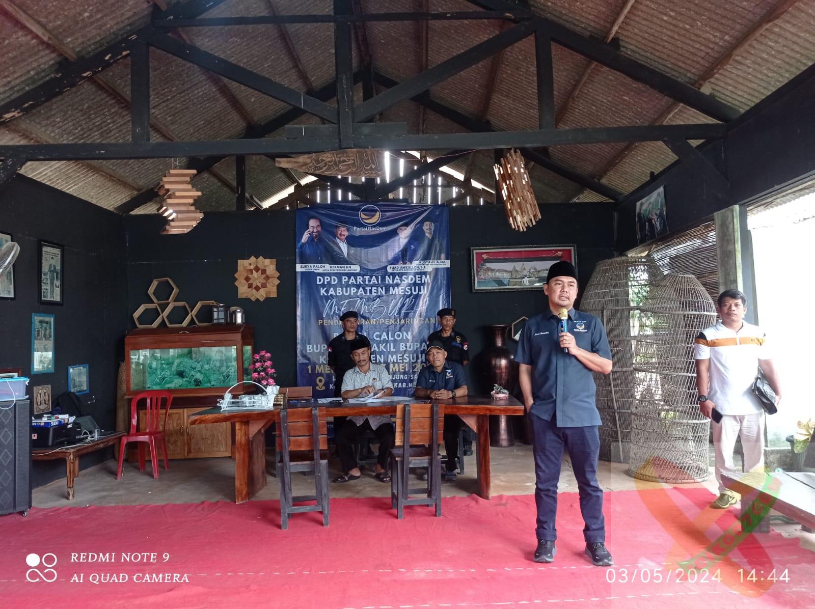 Mesuji – DPD Partai Nasdem Kabupaten Mesuji Resmi Membuka Pendaftaran/Penjaringan Bacalon Bupati – Wakil Bupati Mesuji, pendaftaran di buka 1 Mei – 7 Mei 2024 hari Jum’at.