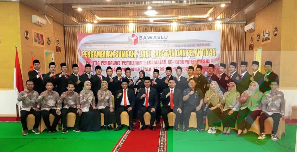 Pelantikan 21 Panitia Pengawas Pemilihan Kecamatan dari tujuh kecamatan di Kabupaten Mesuji, dilakukan Ketua Bawaslu Kabupaten Mesuji, Deden Cahyono,S.Sos.i di laksanakan di gedung balai desa brasan makmur kecamatan Tanjung Raya kabupaten Mesuji.