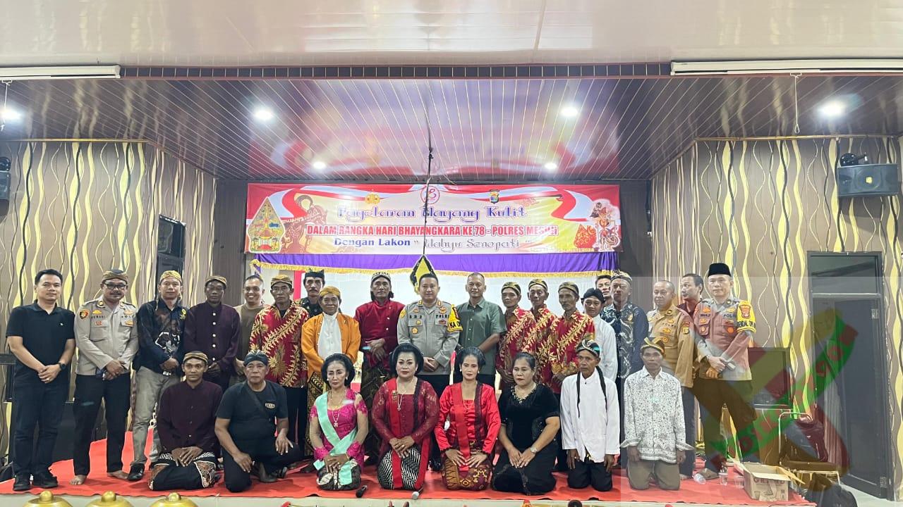 Mesuji Lampung..Kepolisian Resort (Polres) Mesuji, Polda Lampung, menggelar Pagelaran seni Wayang Kulit dengan lakon ‘Wahyu Senopati’ dalam Rangka Hari Bhayangkara Ke-78. Acara berlangsung di Aula Endra Dharma Laksana, Mapolres setempat, Jumat (28/06).