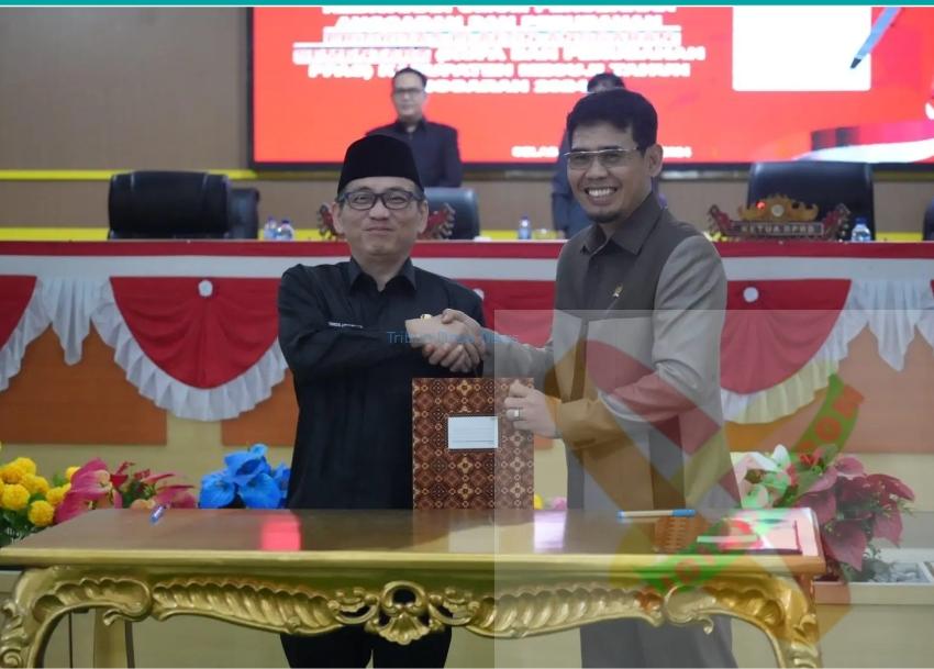 ‘Dalam kesempatan tersebut PJ Bupati Mesuji Febrizal Levi Sukmana bersama wakil Ketua satu DPRD Kabupaten Mesuji jontanara melakukan penandatanganan Raperda tentang Nota kesepakatan KUPA dan perubahan PPAS Kabupaten Mesuji tahun anggaran 2024.