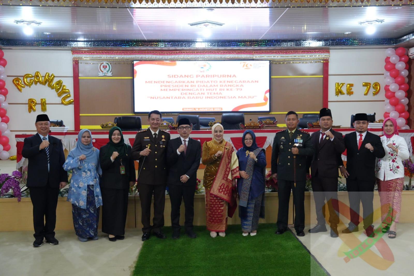 Acara Rapat Paripurna Mendengarkan Pidato Kenegaraan Presiden RI dalam rangka Memperingati HUT ke-79 RI di buka secara langsung oleh Ketua DPRD Kabupaten Mesuji Hj. Elfianah.