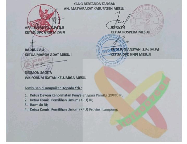 Pada saat ini sedang dalam proses seleksi Calon Anggota KPU Kabupaten Mesuji periode 2024-2029 sudah terpilih 10 (sepuluh) orang Calon Anggota KPU Kabupaten Mesuji yang sebentar lagi akan ditetapkan sebanyak 5 (lima) orang sebagai Anggota KPU Kab. Mesuji terpilih, dalam 10 (sepuluh) nama – nama tersebut terdapat 3 (tiga) orang yang beralamatkan diluar Kabupaten Mesuji serta tidak pernah bertempat tinggal mapun menetap di Kabupaten Mesuji, adapun nama – nama tersbut adalah :