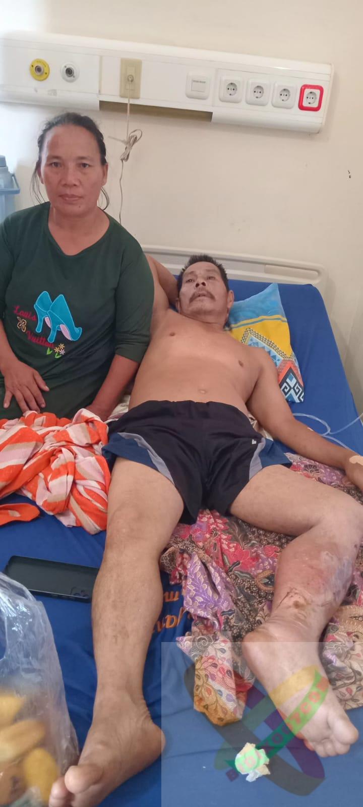Lampung Utara. , – Miris Nasib Thoyib (59) Warga Desa Papang Tangguk Jaya Kecamatan Sungkai Tengah terkapar tak berdaya ditemani istri dan anaknya dan harus di rawat di Rumah Sakit Handayani Kota Bumi Lampung Utara akibat menderita luka dan bengkak bagian kaki akibat tertimpa bongkahan batu pada saat bekerja sebagai karyawan harian lepas di perusahaan Galian C, CV. Pagar Gunung yang berada di desa setempat pada tanggal 06 November 2024.