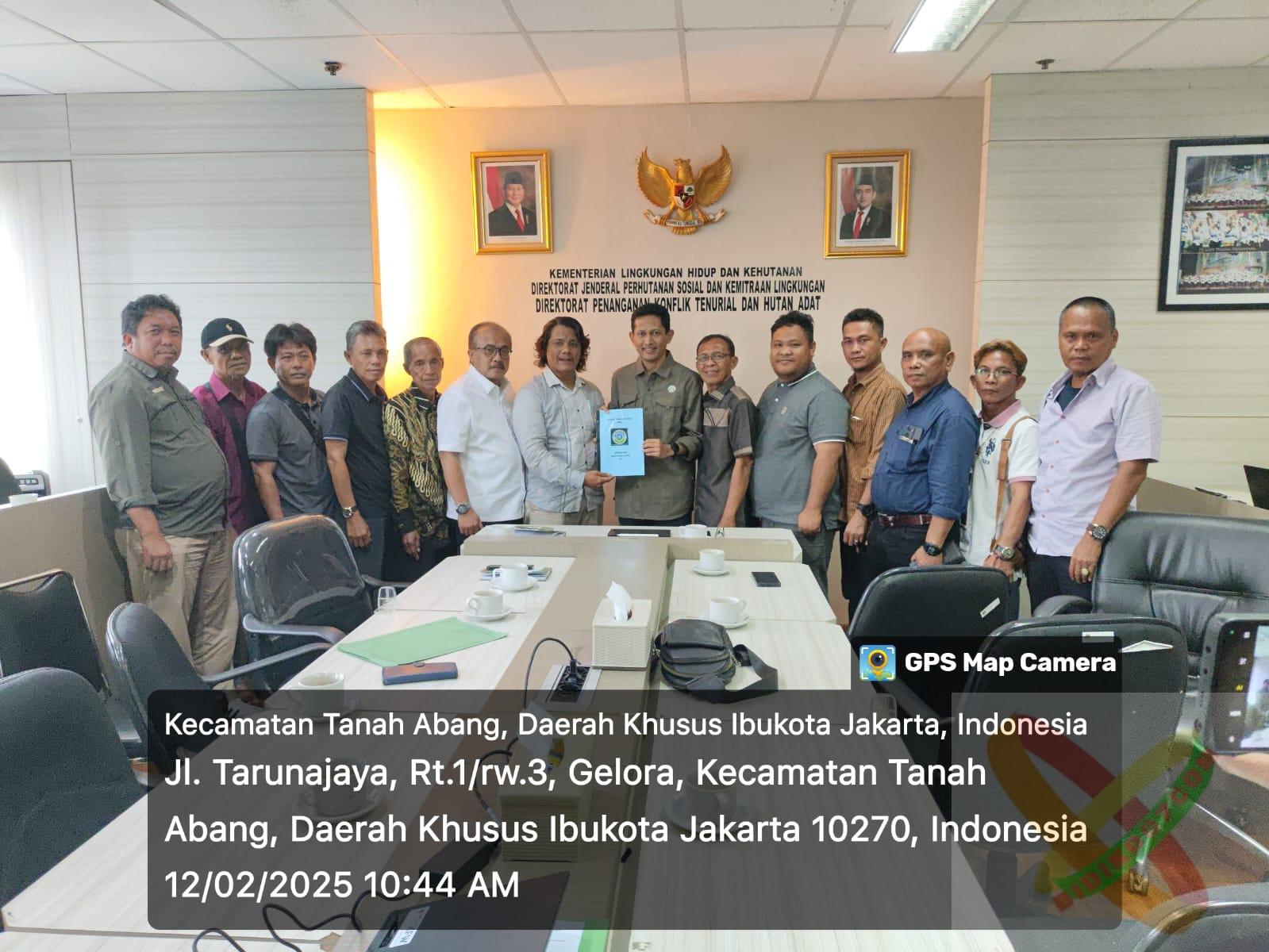Jakarta – masyarakat pribumi Mesuji bersatu datangi kantor kementerian kehutanan di jakarta pusat dan disambut dengan baik oleh direktur penanganan konflik tenurial hutan dan tanah adat bapak julmansyah, bapak Luhut PKBL kehutanan dan bapak Nasrul PKLH di aula ruang rapat kerja kantor kementerian kehutanan di jalan Gatot Subroto Jakarta.rabu tgl 12-02-2025.