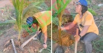 Mesuji..Apri Susanto Pendiri organisasi Forum Ikatan Keluarga Mesuji (FIKM) ajak masyarakat hijaukan Bumi Ragab Begawe Caram dengan dimulai menanam pohon kelapa di setiap pekarangan yang berpotensi untuk ditanam di wilayah Kabupaten Mesuji Lampung. (6/7/25)