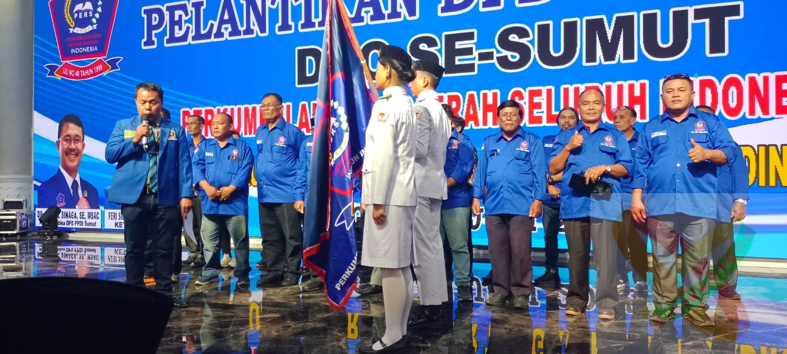 Sebagai simbol dimulainya kepemimpinan baru, Ferry menyerahkan bendera Pataka kepada Ketua DPD PPDI Sumut terpilih, Rudiwanto Munthe, di hadapan seluruh peserta pelantikan.