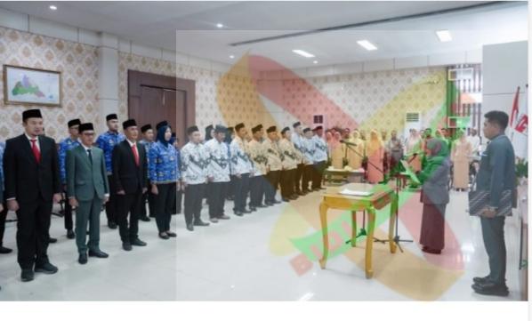 Bupati Mesuji Hj. Elfianah memimpin pelantikan dan pengambilan sumpah jabatan Pimpinan Tinggi Pratama, Kepala Sekolah, dan Jabatan Fungsional di lingkungan Pemerintah Kabupaten Mesuji di Aula Tabek Oy, Lantai III, Kantor Bupati Mesuji, Senin (11/08/2025).
